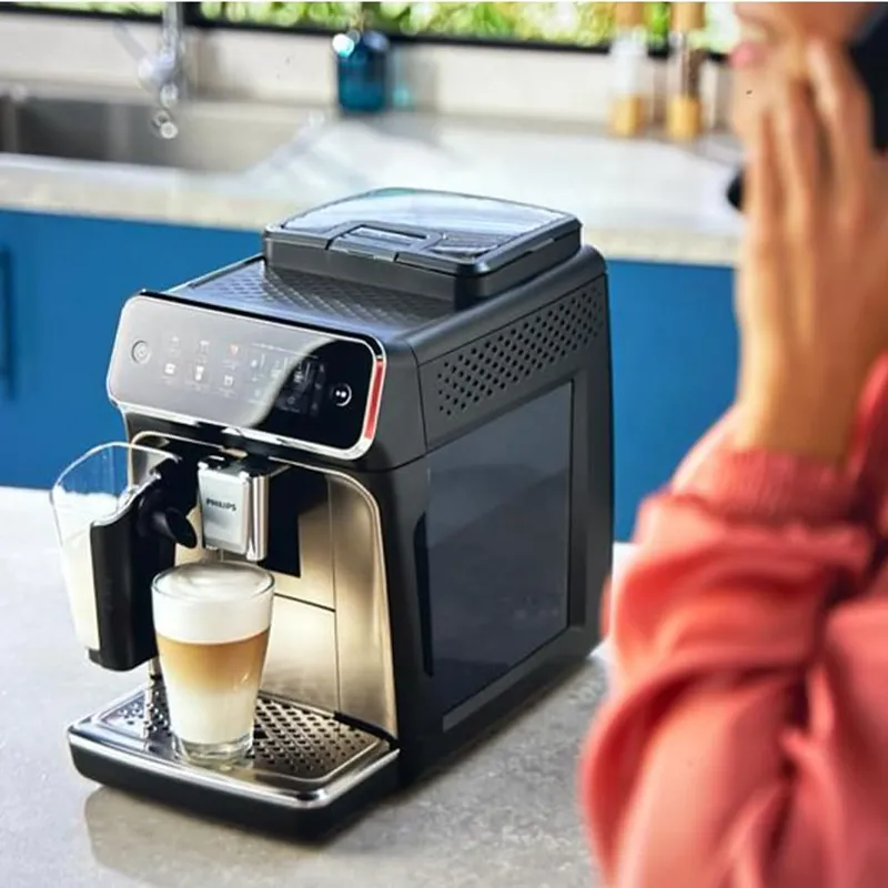 اسپرسوساز Philips EP3347/90 از سری 3300 LatteGo، دستگاهی است که با لمس تنها یک دکمه میتوانید از ۶ نوع نوشیدنی داغ و سرد لذت ببرید. با سیستم LatteGo برای فوم شیر ابریشمی، آسیاب ۱۰۰٪ سرامیکی با ۱۲ درجه تنظیمی، تکنولوژی SilentBrew برای عملکرد تا ۴۰٪ کمصداتر، و فیلتر AquaClean که امکان تهیه تا ۵۰۰۰ فنجان بدون رسوبزدایی را فراهم میکند، این دستگاه یکی از گزینههای کامل و کاربرپسند در رده خود است. مخزن آب ۱٫۸ لیتر، مخزن دانه قهوه ۲۷۵ گرم، و فشار پمپ ۱۵ بار از دیگر ویژگیهای برجسته آن هستند.