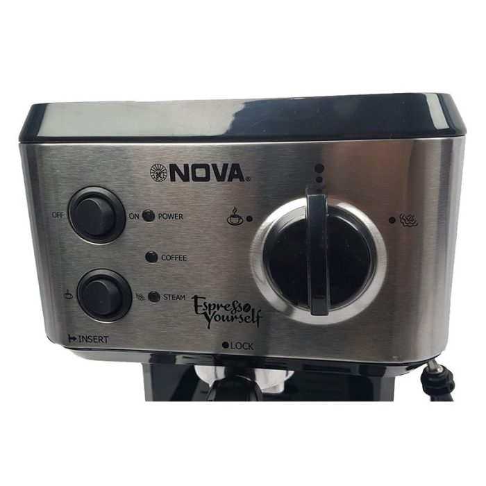 قهوه ساز نوا 146 NOVA با طراحی عالی یک دستگاه پر قدرت و کاملاً کاربردی برای مصارف خانگی و یا کافه های کوچک است.اسپرسو ساز نوا 146 با قدرت بخار 15 بار یک قهوه ساز و اسپرسو ساز قوی محسوب می شود.اسپرسو خارج شده از این دستگاه با کرمای عالی نشان دهنده ی قدرت بسیار خوب نوا 146 است.نوا 146 مجهز به نازل تولید بخار و آب جوش است که از آن برای تهیه کاپوچینو و کف شیر و انواع نوشیدنیهای گرم استفاده میشود.در مدل نوا 146 نازل بخار قابل چرخش طراحی شده است که استفاده از آن را ساده کرده است. همچنین نوا 146 مجهز به صفحه ی گرم نگهداره فنجان است که به شما کمک میکند تعداد بیشتری فنجان قهوه را پیش گرم کنید و از نوشیدن یک فنجان اسپرسو خوب لذت ببرید.بدنه نوا 146 از استیل براق ضد زنگ و پلاستیک مرغوب ساخته شده که زیبایی آن را دو چندان کرده است.در این دستگاه از بویلر و پمپ آب قویتری نسبت به مدلهای 139 و 140 استفاده شده است که بر روی درجه حرارت قهوه خروجی و همچنین بخار آب تاثیر گذار است.نوا 146 قدرت موتوری برابر با 1050 وات دارد که در اصل قهوه تر از مدل های 139 و 140 است.