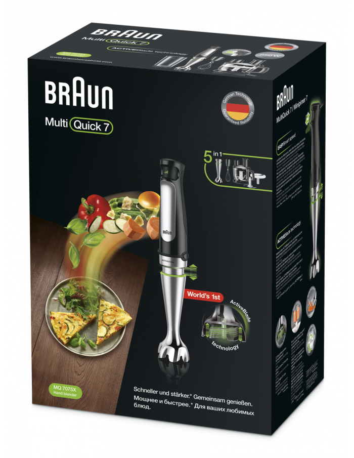 با گوشتکوب برقی براون MQ7075X می توانید وعده های غذایی سالم را به سرعت و به راحتی تهیه کنید. به لطف موتور قدرتمند 1000 وات، شما انرژی زیادی را تجربه می کنید و می توانید سخت ترین مواد را خیلی راحت له کنید.