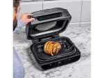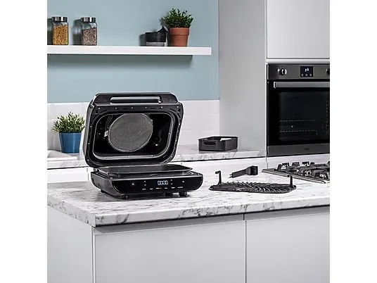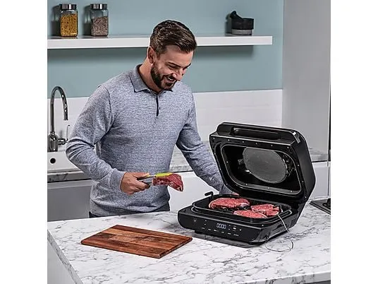 Ninja Foodi MAX AG551EU یک دستگاه ترکیبی حرفهای است که ۶ عملکرد مختلف را در یک پکیج ارائه میدهد: گریل، هواپز، پخت، کباب کردن، خشک کردن (dehydrate) و گرم کردن مجدد . این محصول برای کاربرانی طراحی شده که هم دنبال طعم گریل حرفهای و هم خواهان سبک زندگی سالمتر هستند، همراه با امکانات هوشمند که فرایند پخت را ساده میکند.