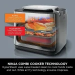 پخت سریع و ترکیبی: فناوری “Combi” ترکیبی از HyperSteam و هوای داغ (Air Fry)، نتیجهای با بدنه ترد و مغز نرم ارائه میدهد؛ طبق ادعای Ninja، تا ۵۰٪ سریعتر از فرهای متعارف .